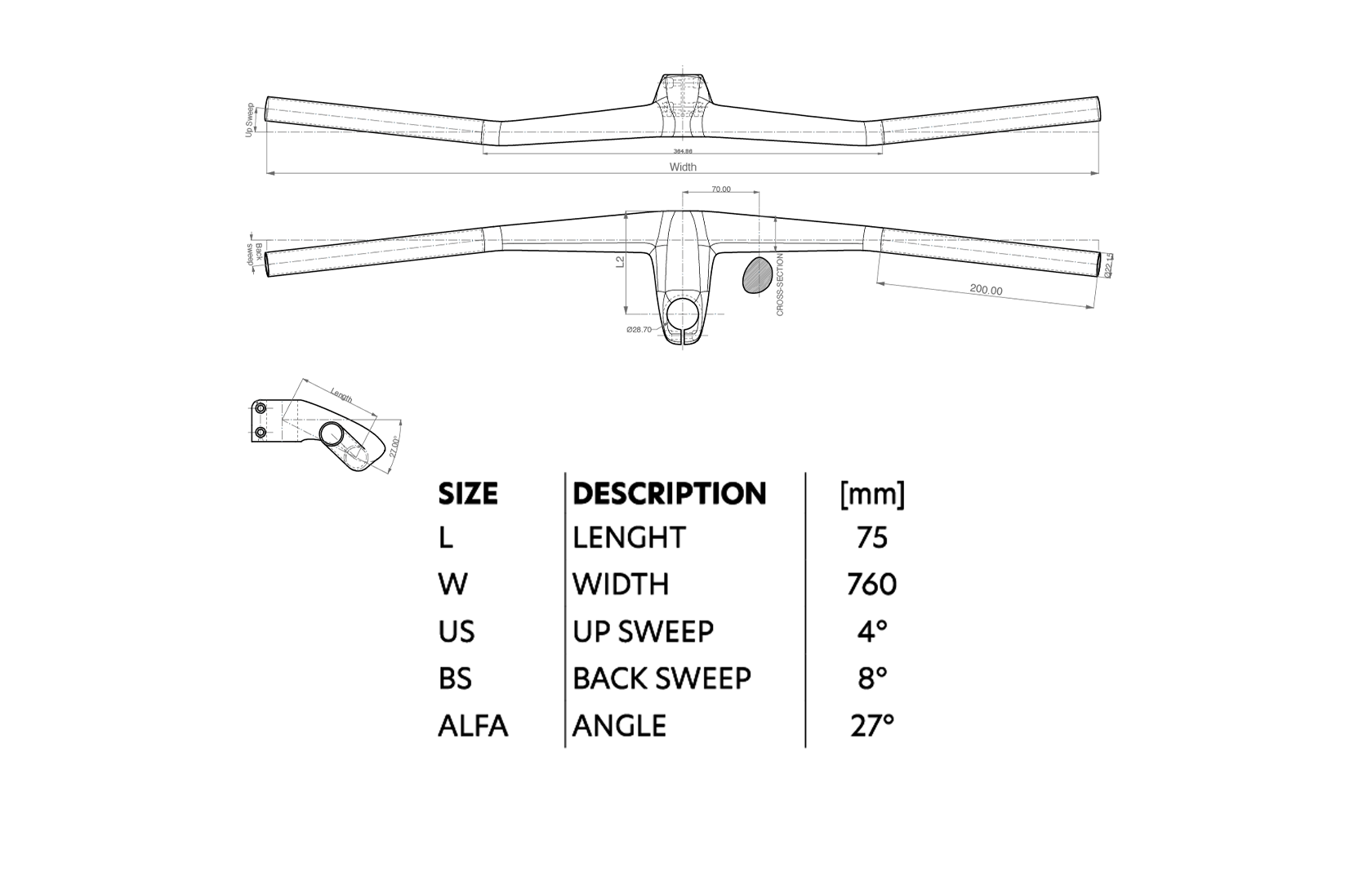 - Angulo efectivo del stem: -27°